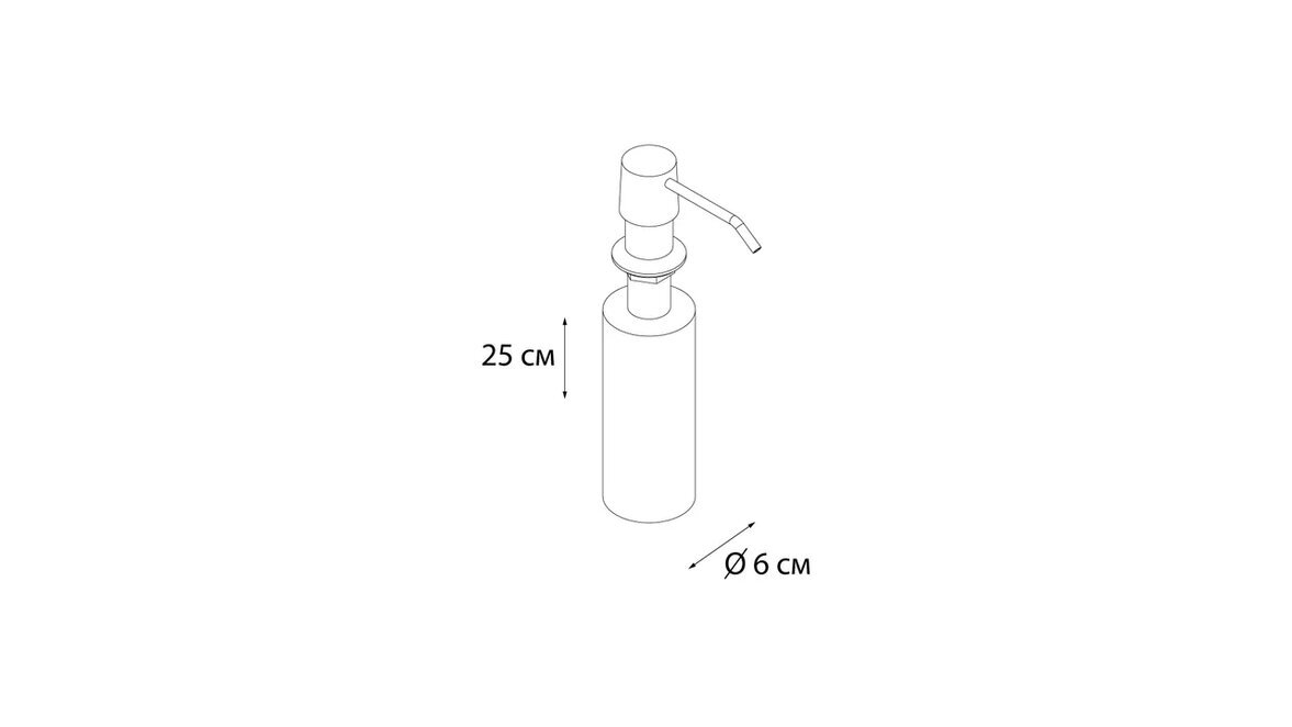 Встраиваемый в столешницу диспенсер для жидкого мыла с металлической помпой и пластиковой колбой объёмом 350 мл.