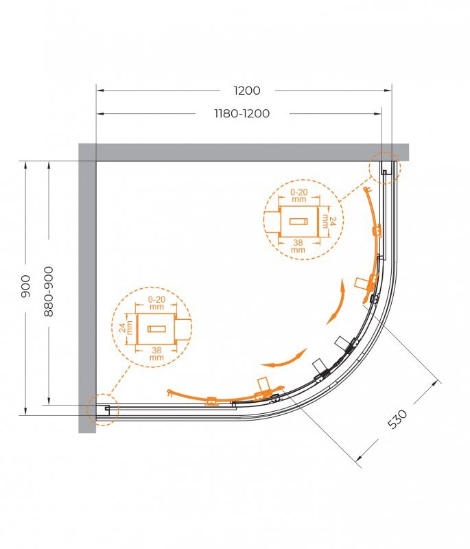 • Размеры с диапазоном регулировок (ШхД): 1180-1200х880-900 мм.