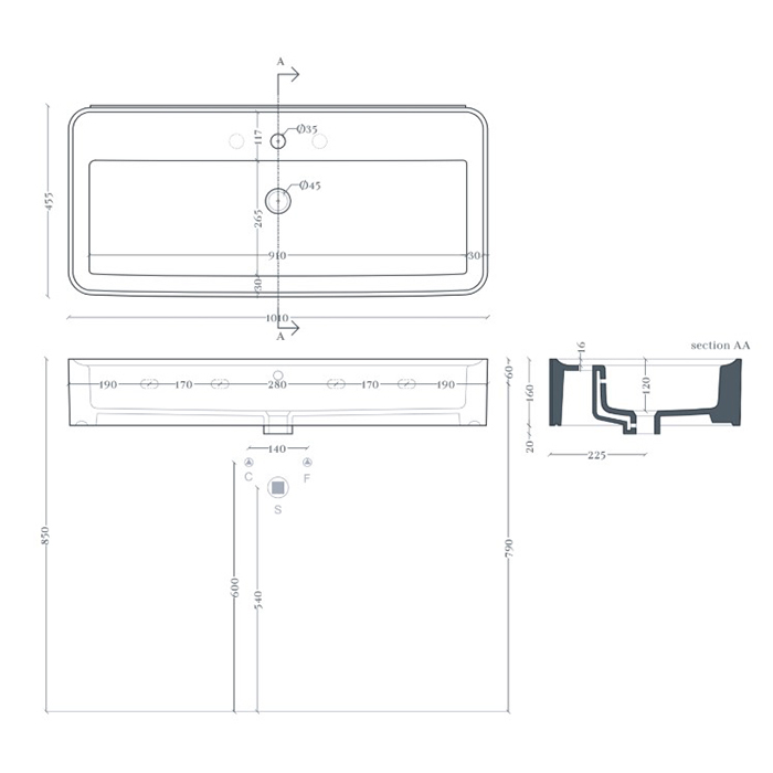 ArtCeram RODOLFO 100 ROL005 01 34 Раковина накладная/подвесная 100х45 см, с 1 отв под смеситель, без слив перелива, цвет белый.+покр SANIGLAZE