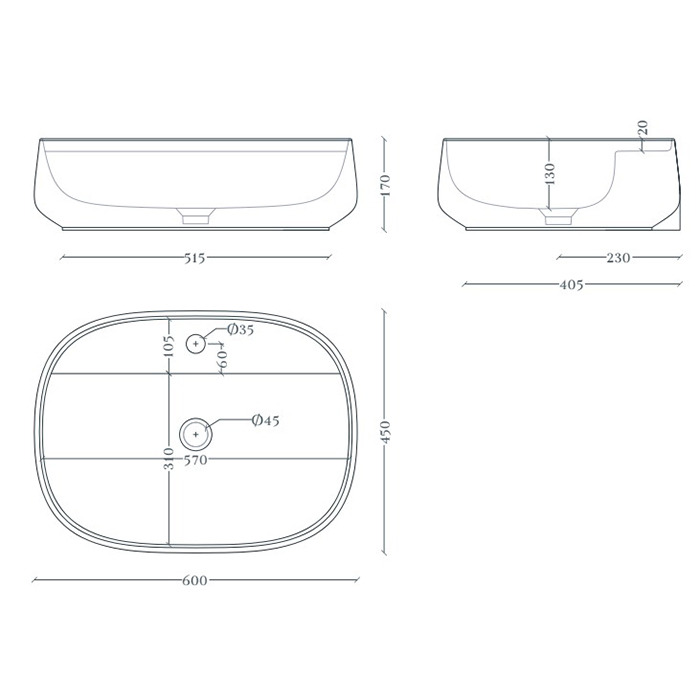 ArtCeram WHISKY 60 WHL002 01 34 Раковина накладная 60х45 см, с 1 отв под смеситель, цвет белый + покр SANIGLAZE