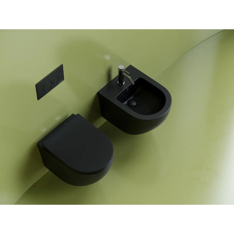 Ceramica Nova Uno CN11001MB Подвесной унитаз c ультра тонким сидением и крышкой с функцией плавного закрытия, цвет: чёрный