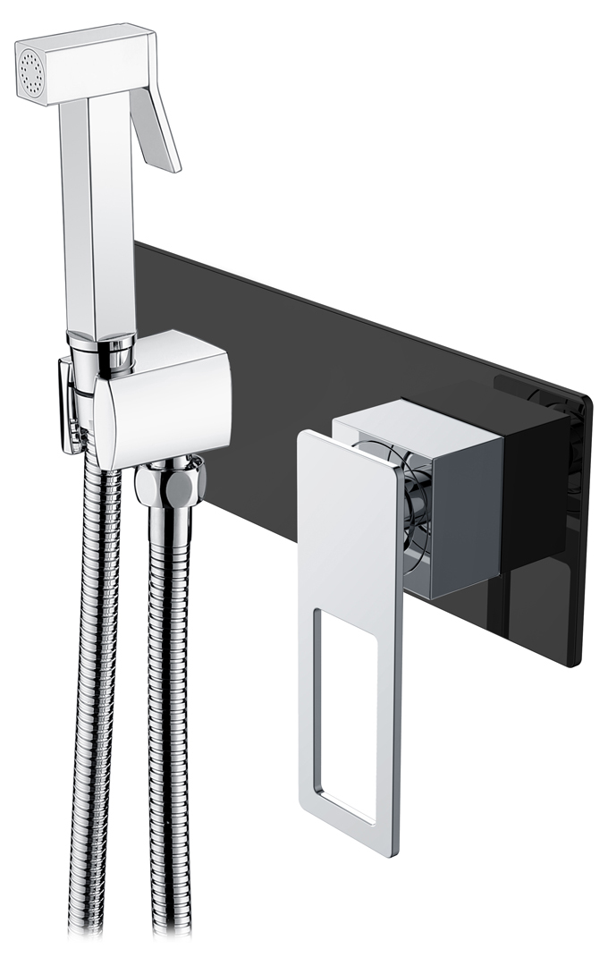 Boheme Q 147-BCR Гигиеническая лейка со смесителем, цвет: чёрный,хром