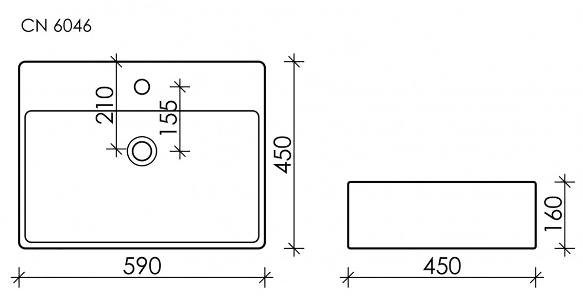 Ceramica Nova Element CN6046 Умывальник чаша накладная прямоугольная, 59x45, цвет: белый