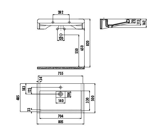 • Размеры (ШхДхВ): 80 х 44,5 х 16,2 см.