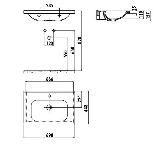 • Отверстие под смеситель.