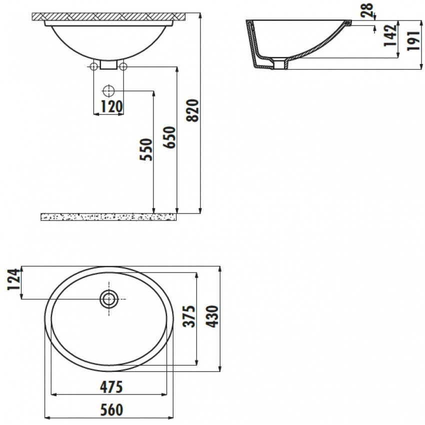 Раковина под столешницу Creavit 56 TP214-00CB00E-0000.