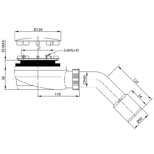 • Cифон для поддонов с отверстием под сифон Ø 90мм;