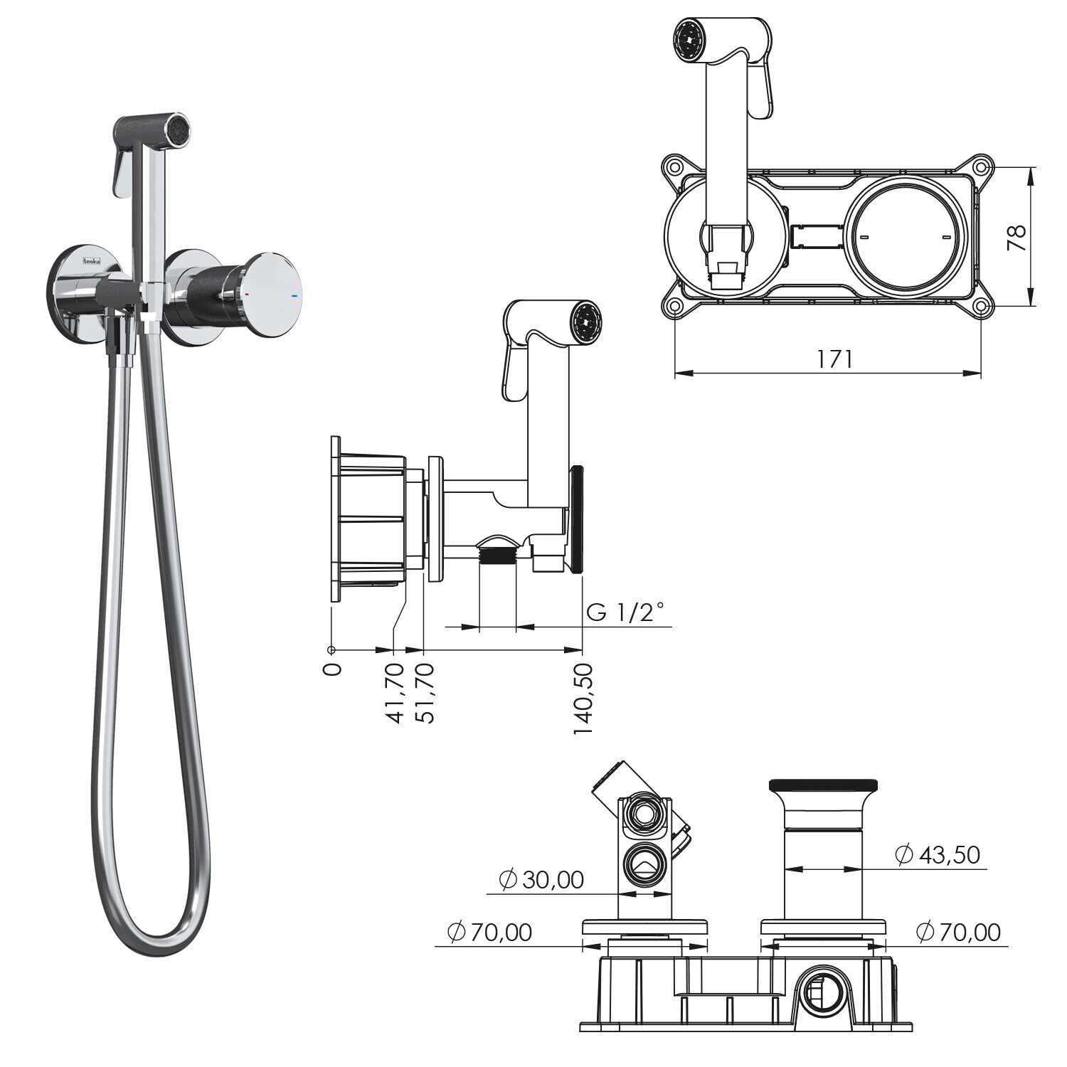 Teska T5538 Встраеваемый смеситель c гигиеническим душем на 2 отверстия Arte Tera, черный