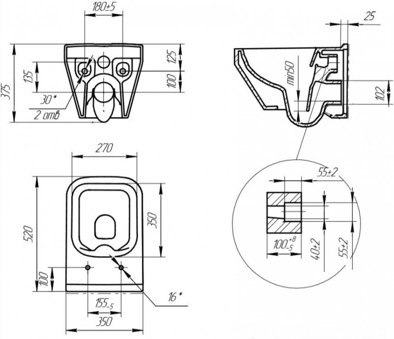 Cersanit CREA 63115 CREA SQUARE Clean On DPL EO slim Подвесной унитаз