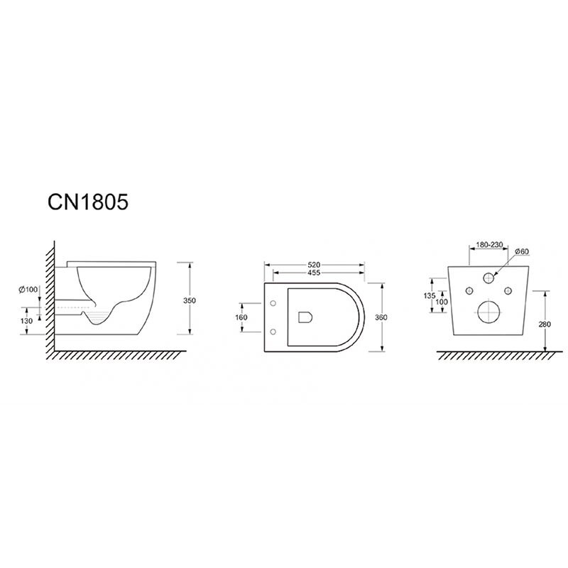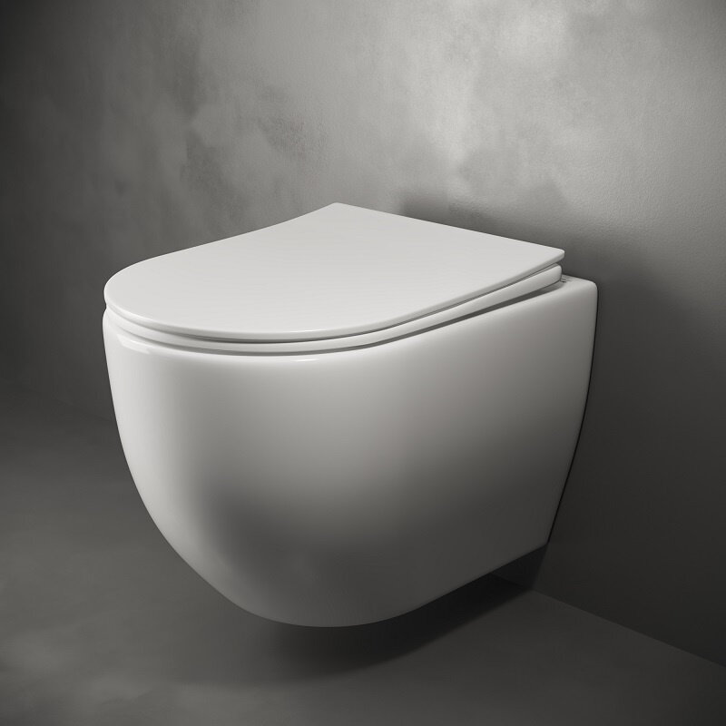 Ceramica Nova Mia CN1805 Подвесной унитаз с ультра тонким с сидением с функцией плавного закрытия, цвет: белый