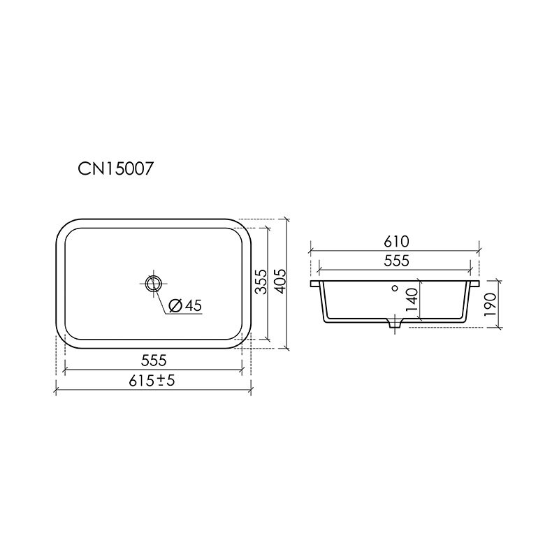 Ceramica Nova Era CN15007 Раковина встраиваемая снизу, c отверстием слива - перелива, 600x400x210 мм
