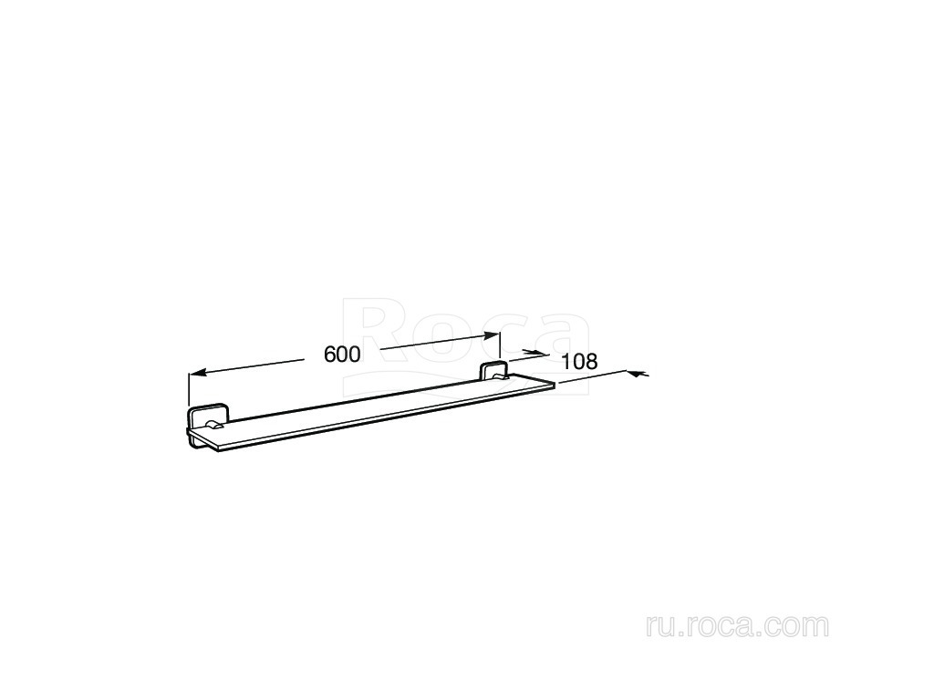 Стеклянная полка Roca Victoria с шириной 600 мм, может быть установлена с помощью винтов или клея.