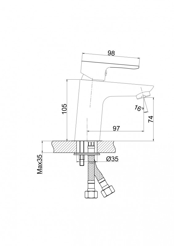 • смеситель, подводка для воды, донный клапан, крепеж, инструкция.
