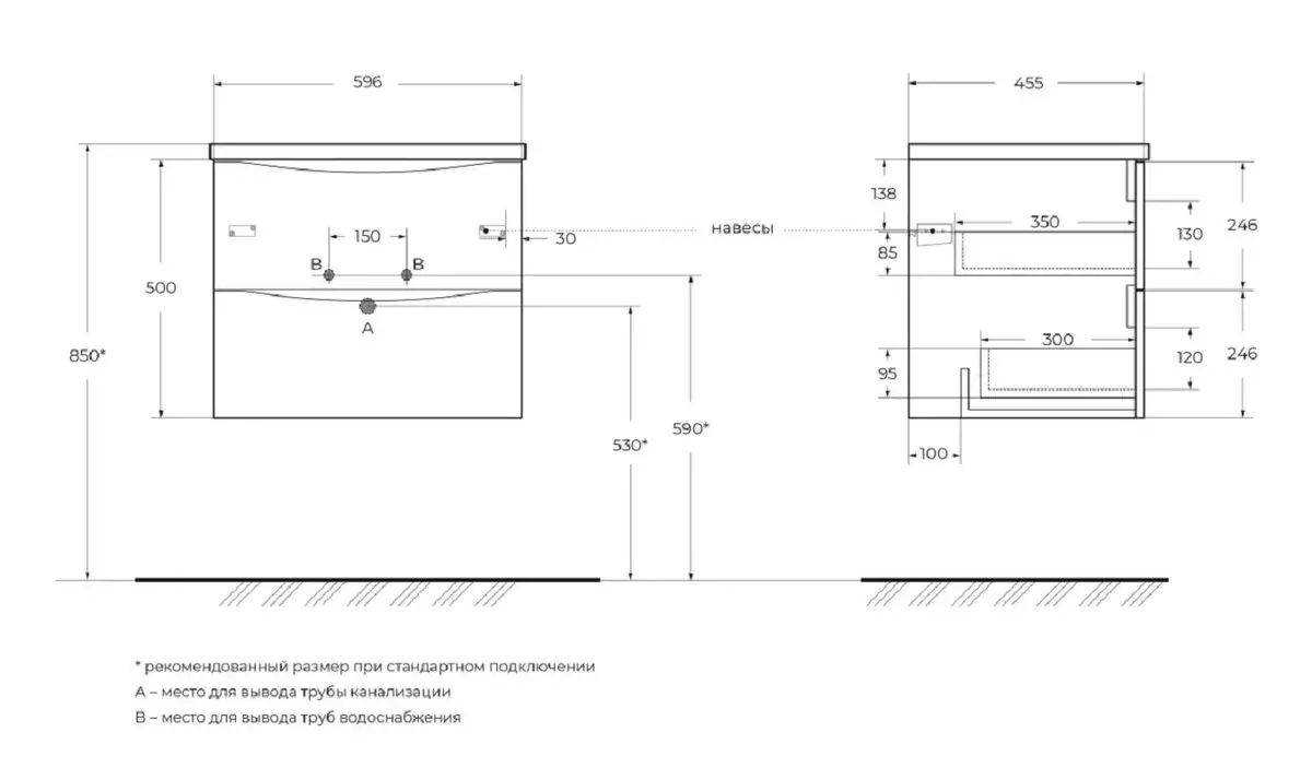 BelBagno MARINO-CER-N-600-2C-SO-RR-P MARINO-CER-N База под раковину подвесная с двумя выкатными ящиками, Rovere Rustico, 596x455x500, MARINO-CER-N-600-2C-SO-RR-P