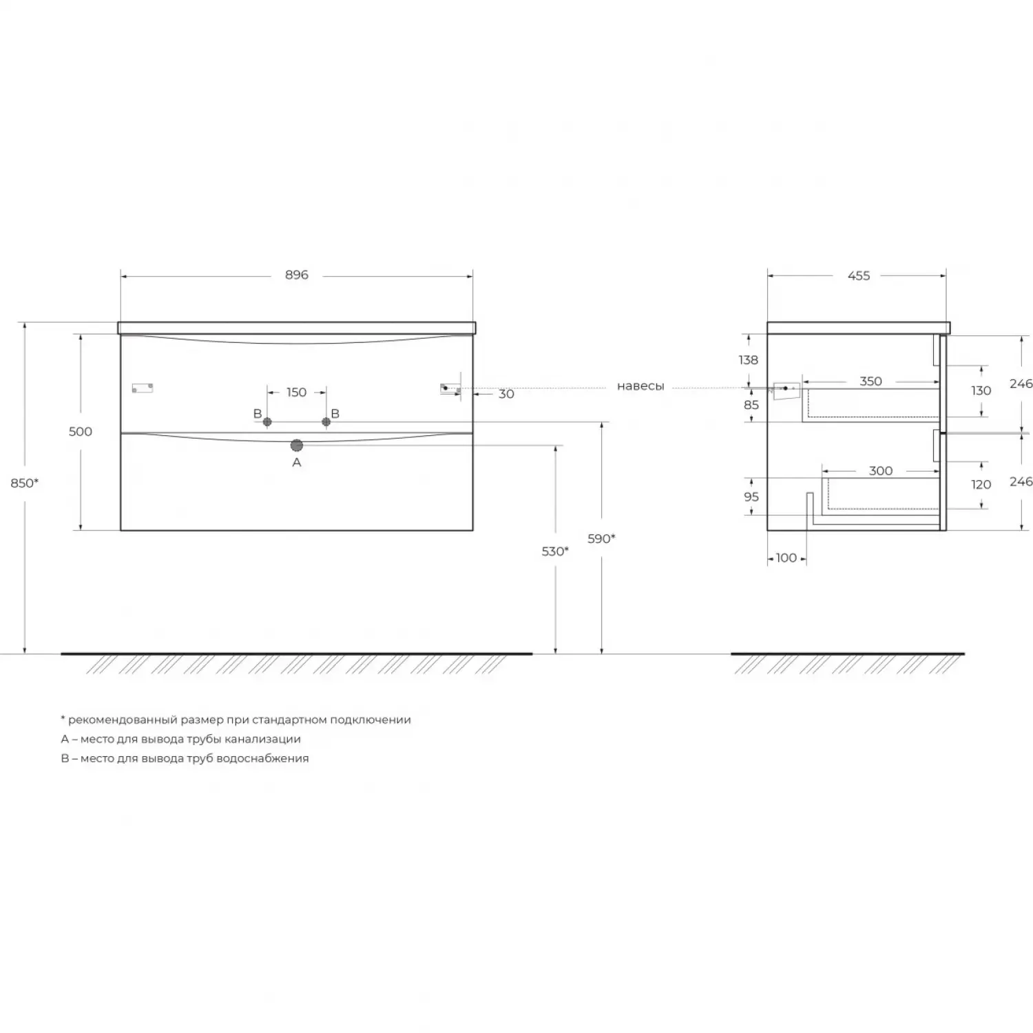 BelBagno MARINO-CER-N-900-2C-SO-RR-P MARINO-CERN- База под раковину подвесная с двумя выкатными ящиками, Rovere Rustico, 896x455x500, MARINO-CER-N-900-2C-SO-RR-P