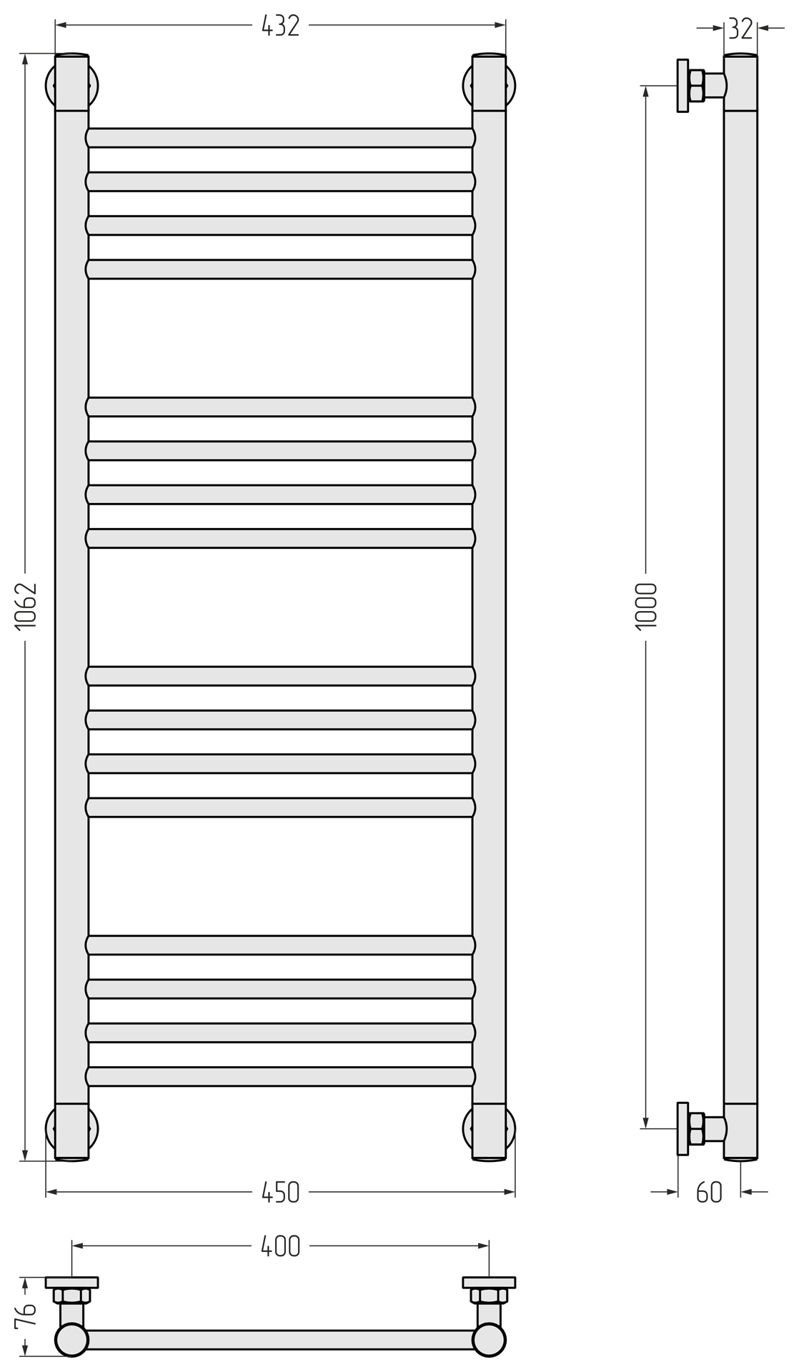 Полотенцесушитель водяной Сунержа Богема+ 071-0220-1040, высота 100 см, ширина 40 см, универсальное подключение, цвет сатин