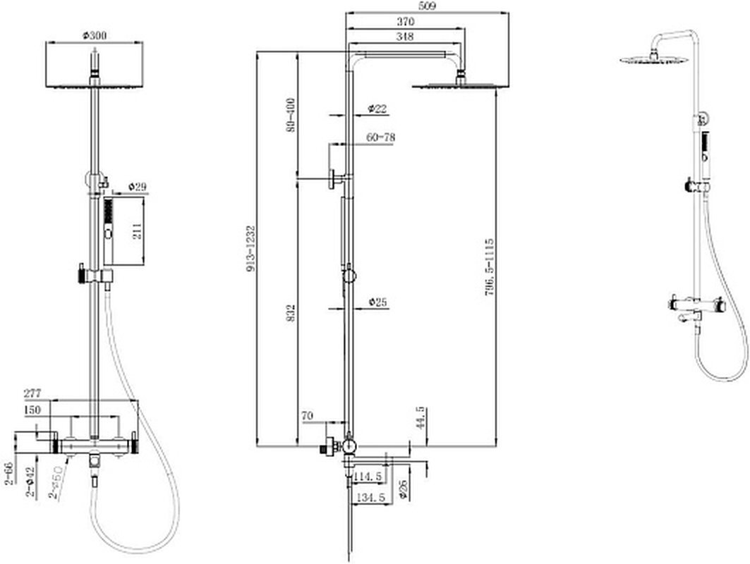 Allen Brau 5.31A10-MG 5.31A10-MG PRIORITY Душ.сист.H 800-1270 мм,излив поворот.,Верх.душ Slim Ф300,Kerox,гр.браш (346233)
