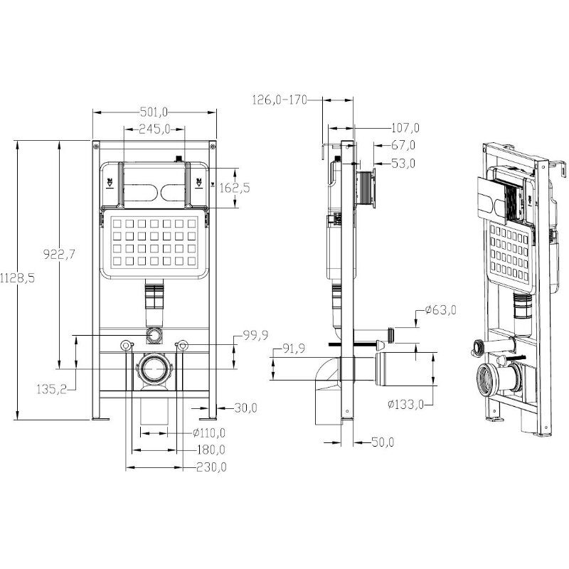 Allen Brau 9.1EV00.20 9.1EV00.20 EVO Инсталляция для подв. унитаза, патрубки, б/кнопки 1129х118х500мм (347722)