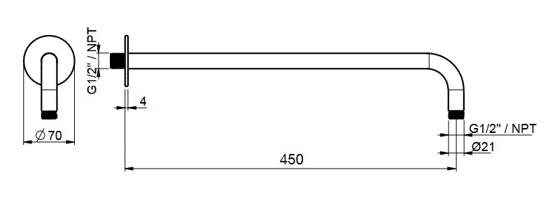 Almar Round E021103.HB316 Кронштейн для верхнего душа наст. 45 см, цвет: 316 PVD brushed high brass