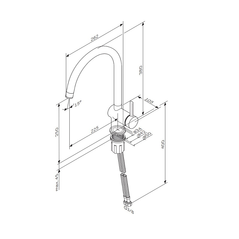 AM.PM Func F8F07000 Смеситель для кухни высокий с С-изливом, хром
