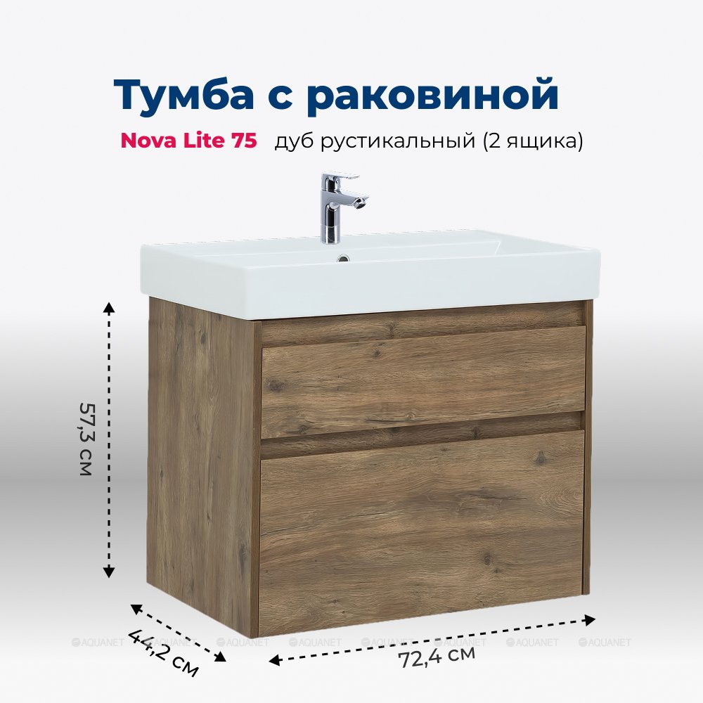 Aquanet 254697 Тумба с раковиной Nova Lite 75 2 ящ. цв.дуб рустикальный (254697)