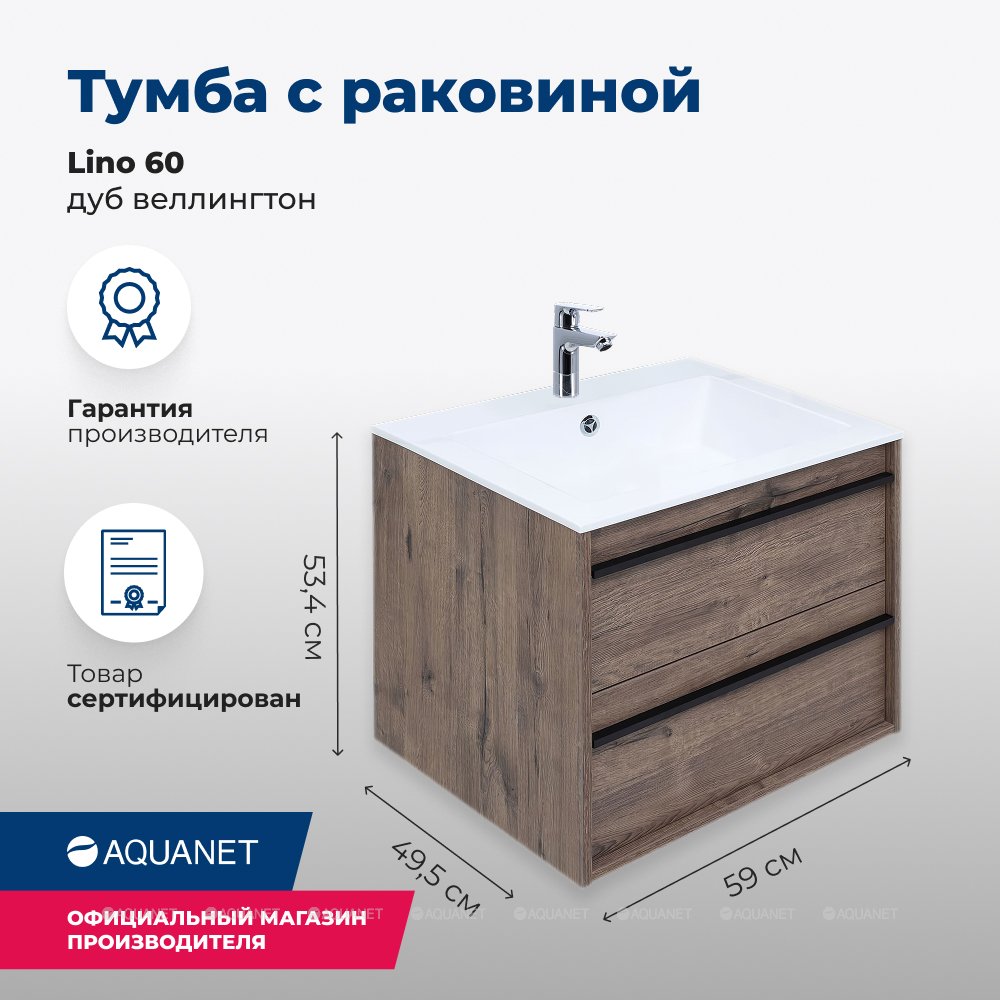 Aquanet 271944 Тумба с раковиной Lino 60 Дуб Веллингтон (271944)