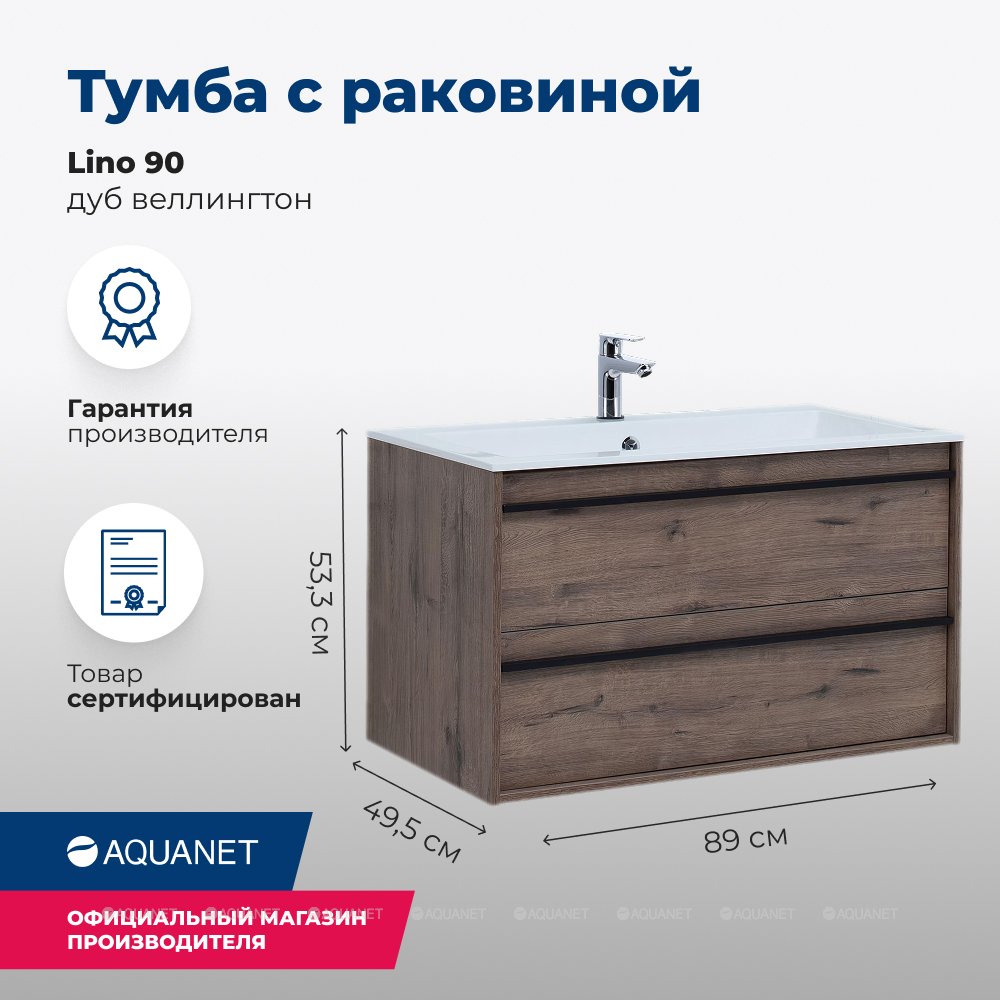 Aquanet 271950 Тумба с раковиной Lino 90 Дуб Веллингтон (271950)