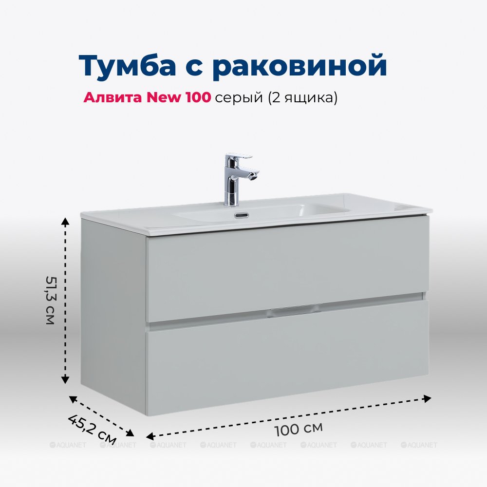 Aquanet 274010 Тумба с раковиной Алвита new 100 2 ящ. цв.серый (274010)