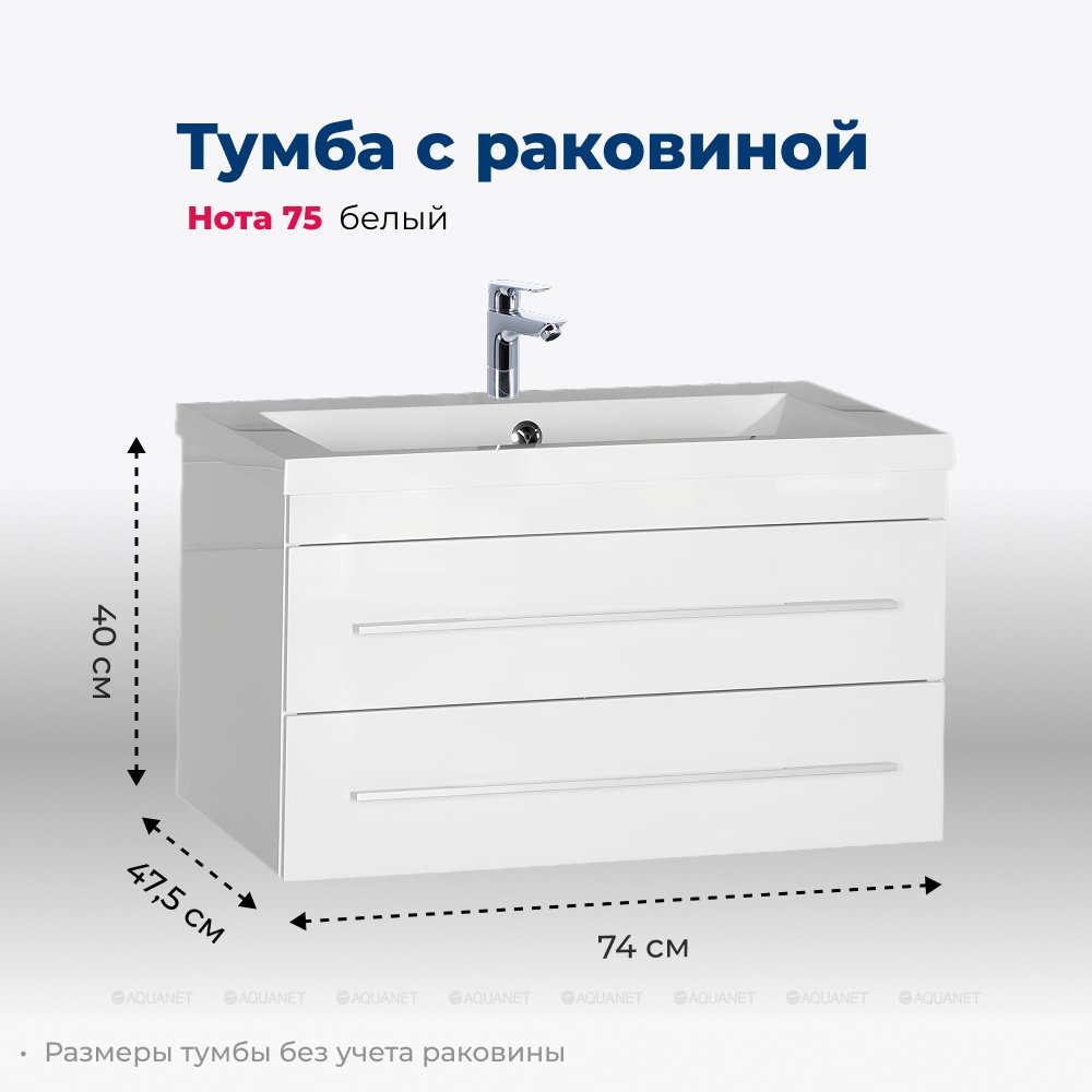 Aquanet 287707 Тумба с раковиной Нота 75 белый (раковина Aquanet) (287707)