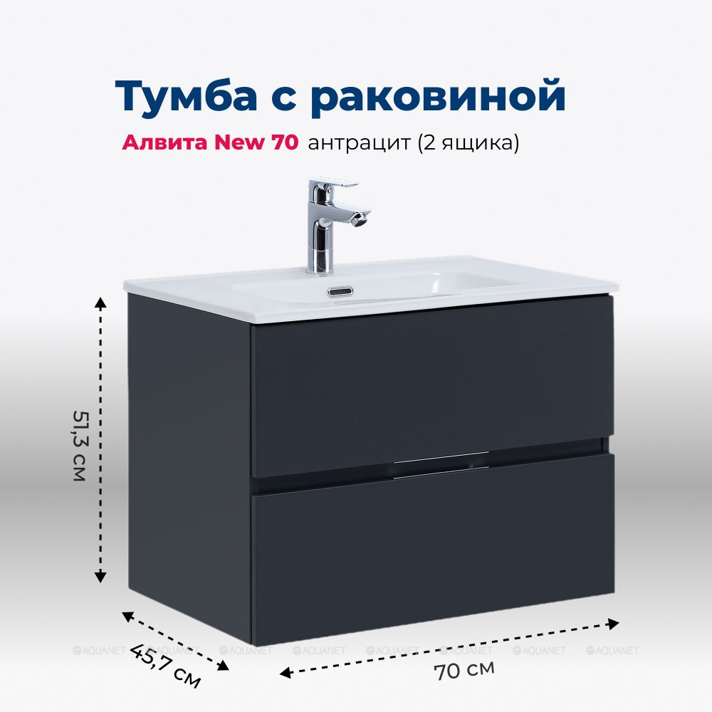 Aquanet 306153 Тумба с раковиной Алвита new 70 2 ящ. цв.антрацит (306153)