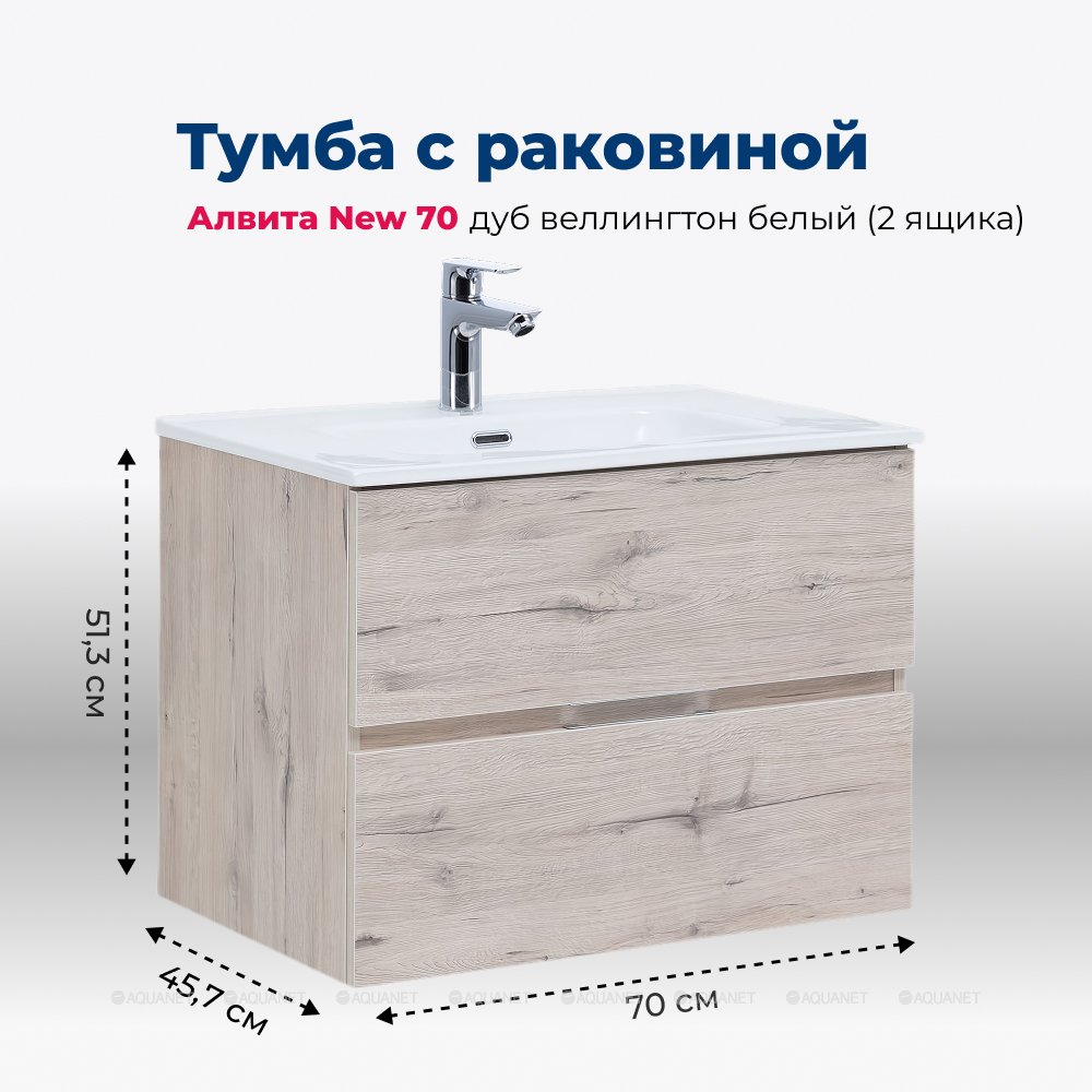 Aquanet 306155 Тумба с раковиной Алвита new 70 2 ящ. цв.дуб веллингтон белый (306155)