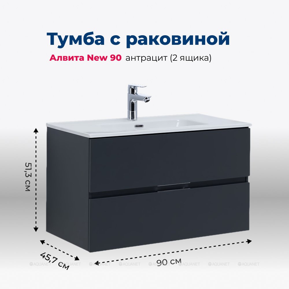 Aquanet 306164 Тумба с раковиной Алвита new 90 2 ящ. цв.антрацит (306164)