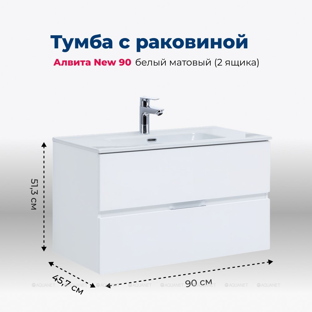 Aquanet 306165 Тумба с раковиной Алвита new 90 2 ящ. цв.белый матовый (306165)