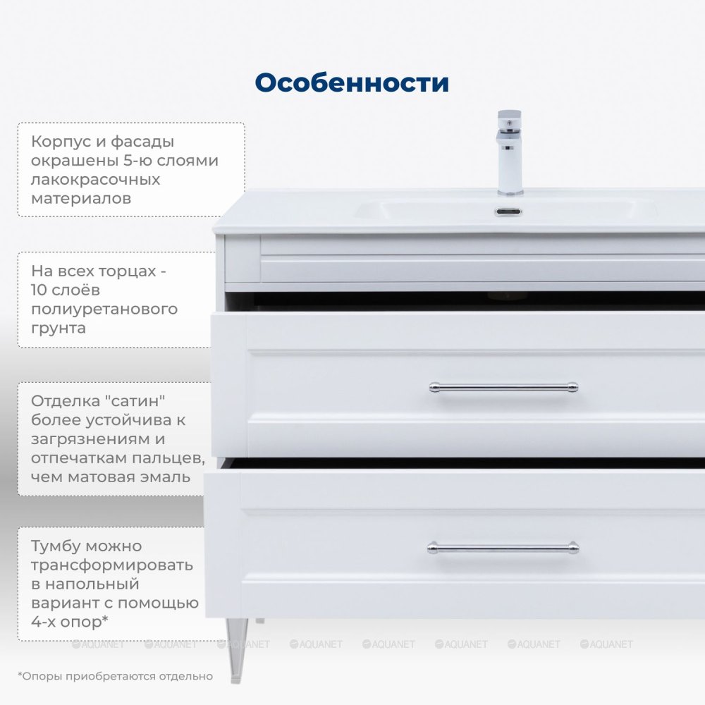 Aquanet 306369 Тумба Бостон new 100 цв.белый сатин (306369)