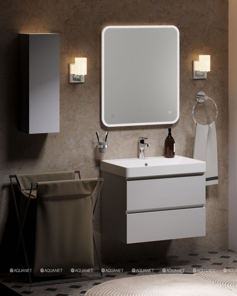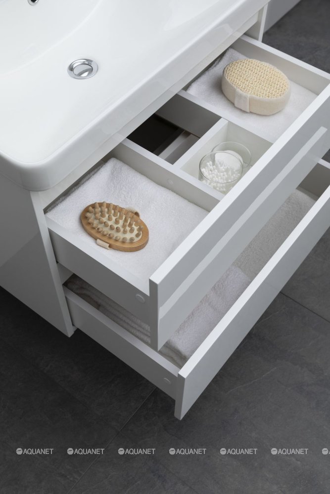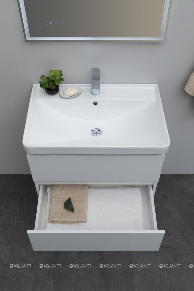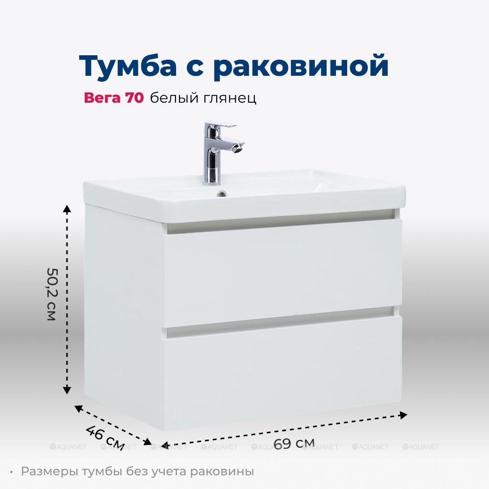 Aquanet 308335 Тумба с раковиной Вега 70 2 ящ. цв.белый глянец (308335)