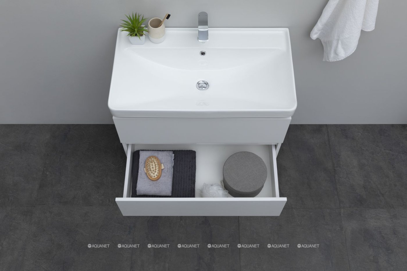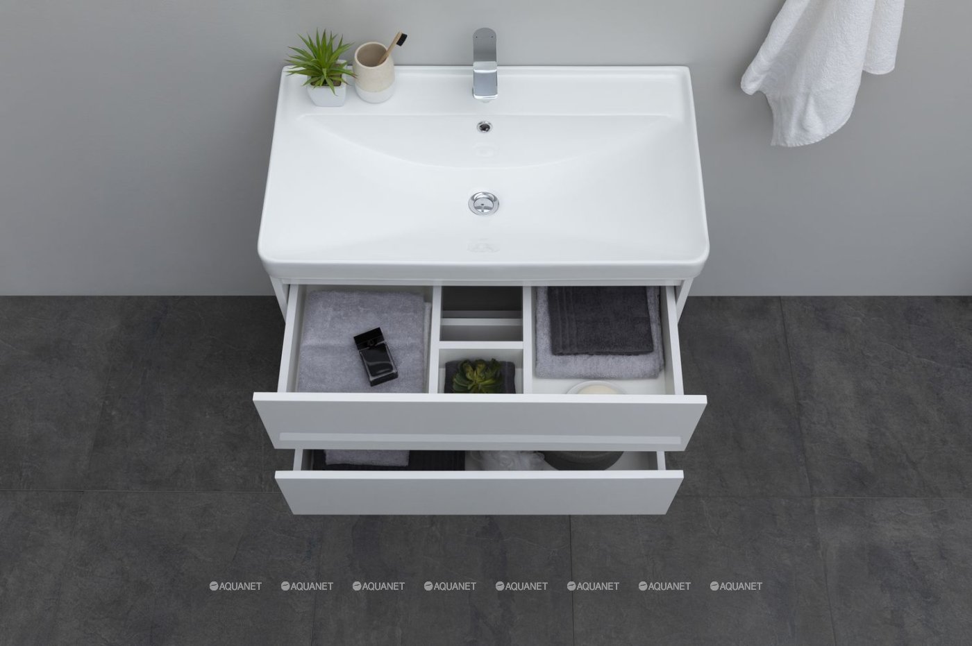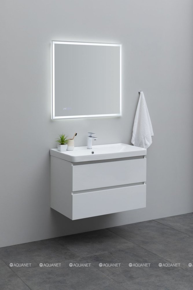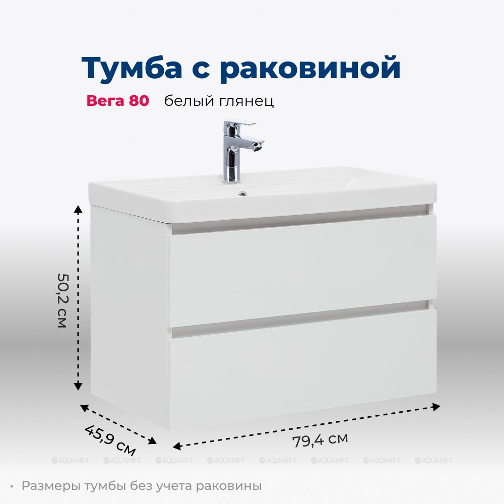 Aquanet 308336 Тумба с раковиной Вега 80 2 ящ. цв.белый глянец (308336)