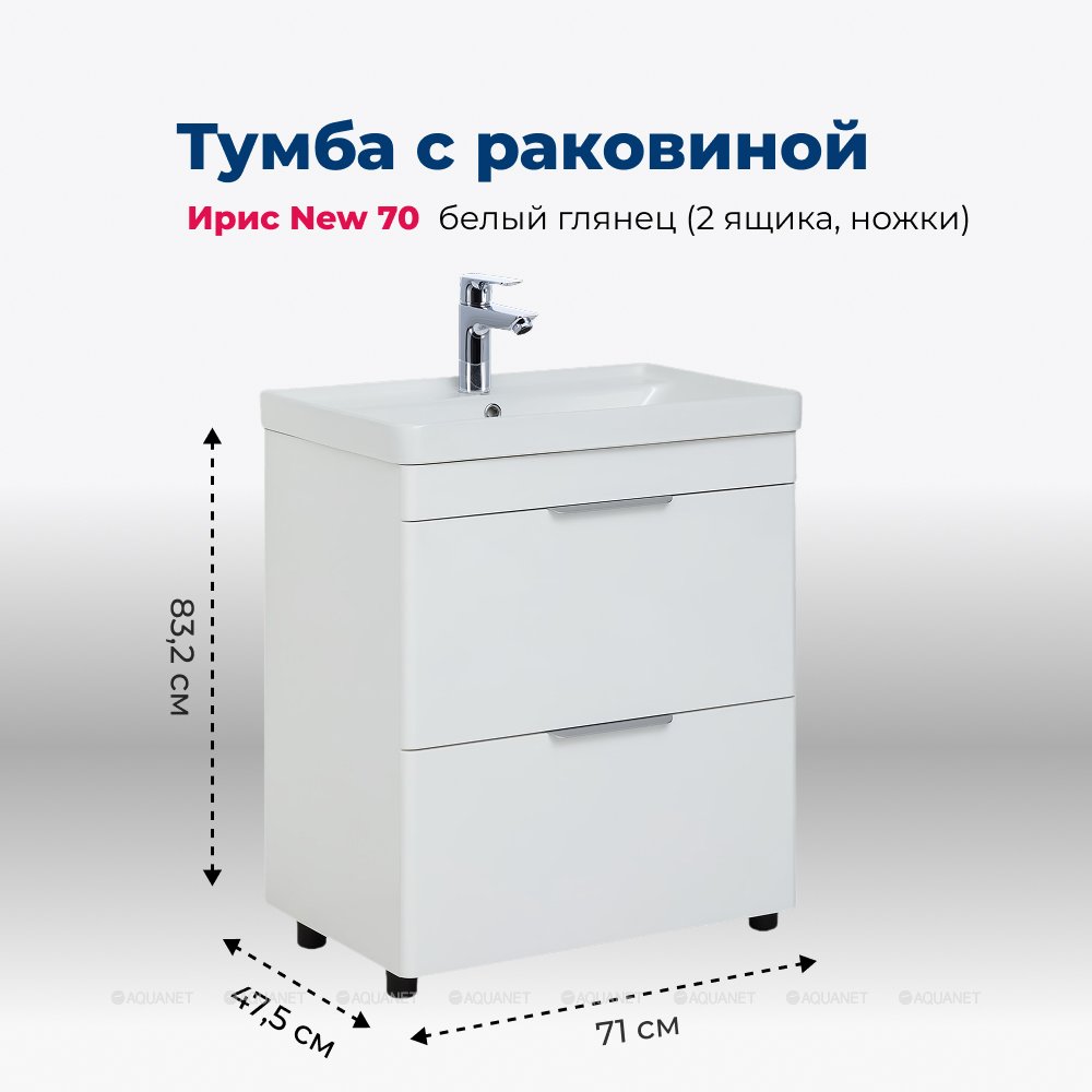 Aquanet 312426 Тумба с раковиной Ирис new 70 напольная 2 ящ. цв.белый глянец (312426)