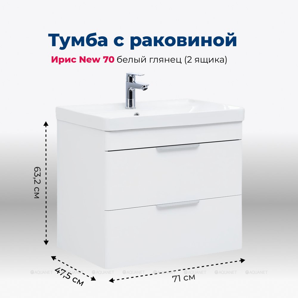 Aquanet 312428 Тумба с раковиной Ирис new 70 подвесная 2 ящ. цв. белый глянец (312428)