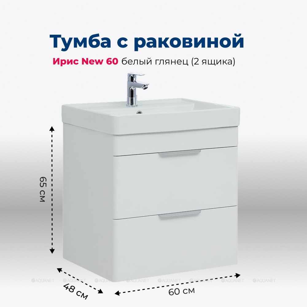 Aquanet 332258 Тумба с раковиной Ирис new 120 L подвесная 2 ящ. цв. белый глянец (332258)
