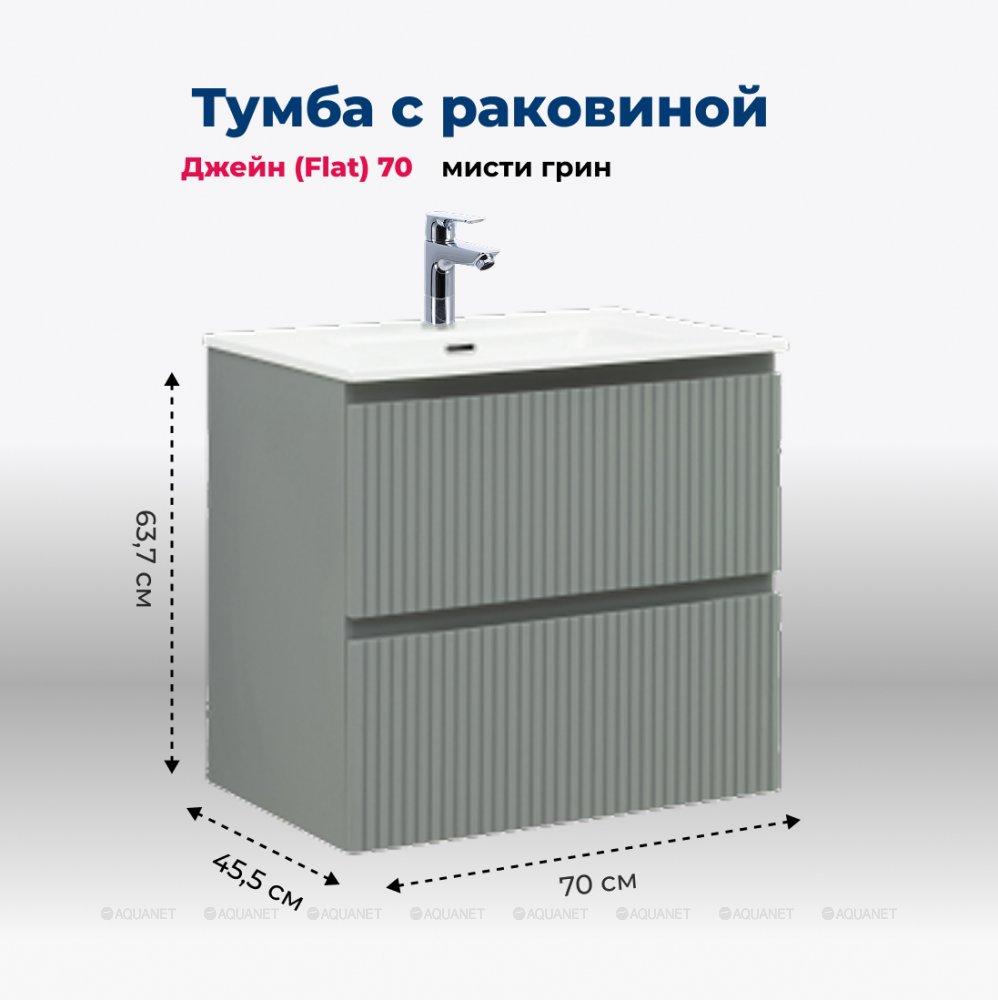 Aquanet 332535 Тумба с раковиной Джейн 70 цв.мисти грин (раковина Flat) (332535)