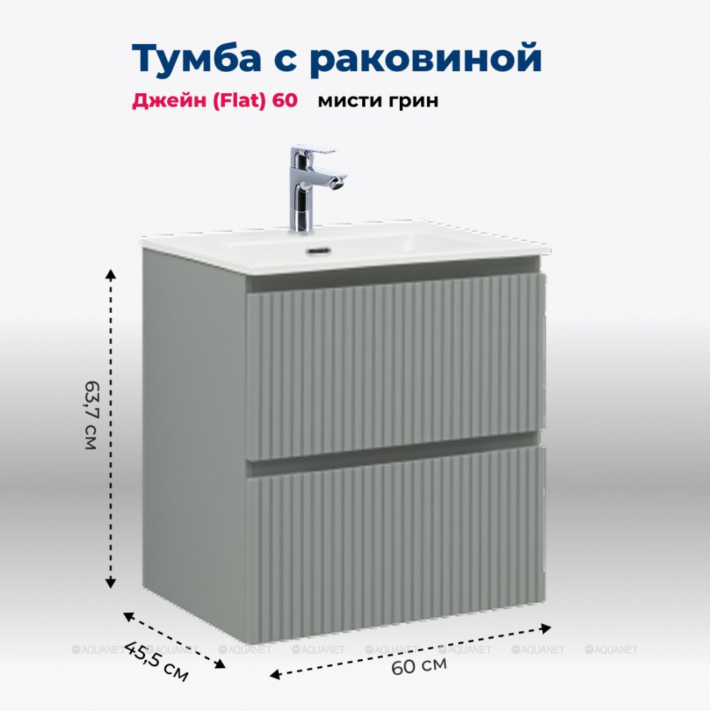 Aquanet 332536 Тумба с раковиной Джейн 60 цв.мисти грин (раковина Flat) (332536)