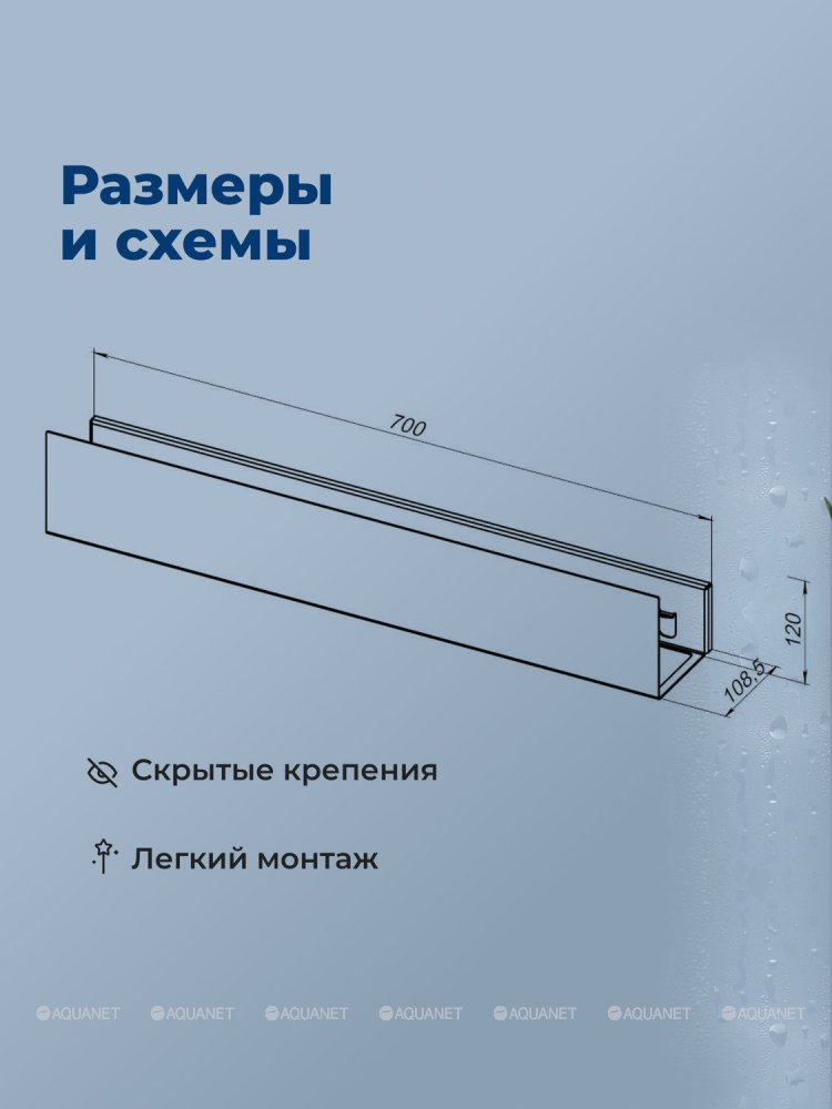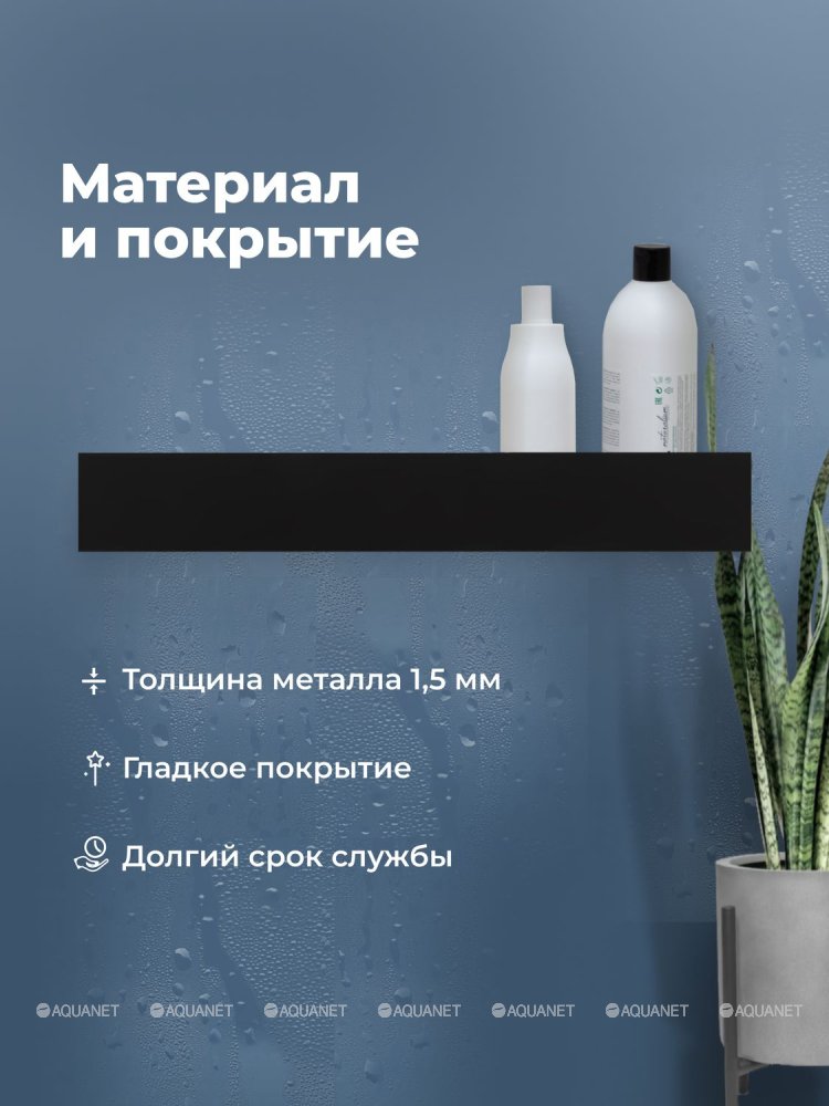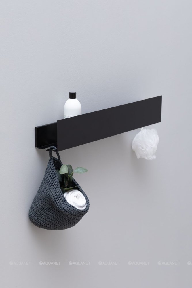 Aquanet 341534 Полка Магнум Н 700х120х100 с крючками цв. черный матовый (341534)