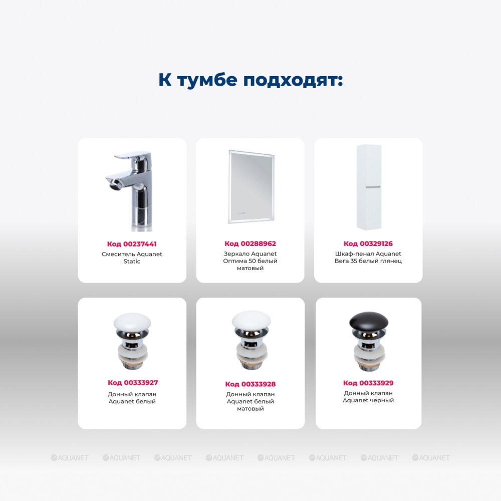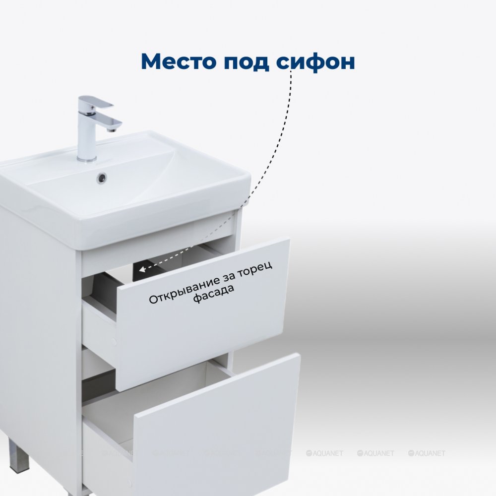 Aquanet 344120 Компл.2 - Тумба Вега 50 напольная 2 ящ. цв. белый глянец (344120)