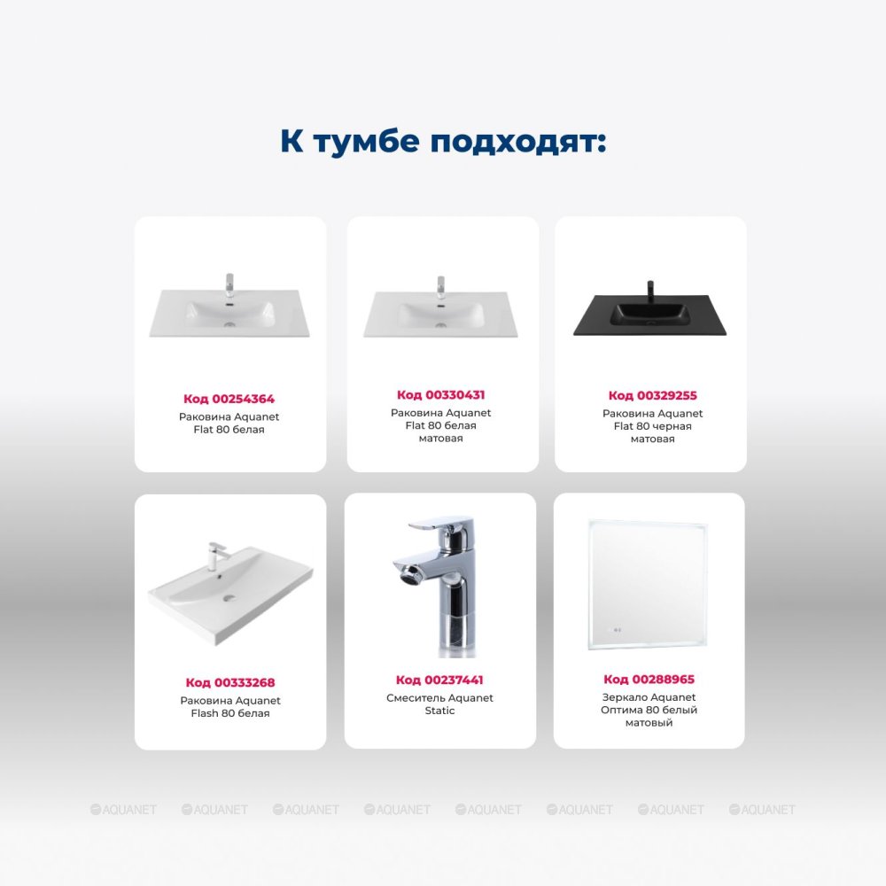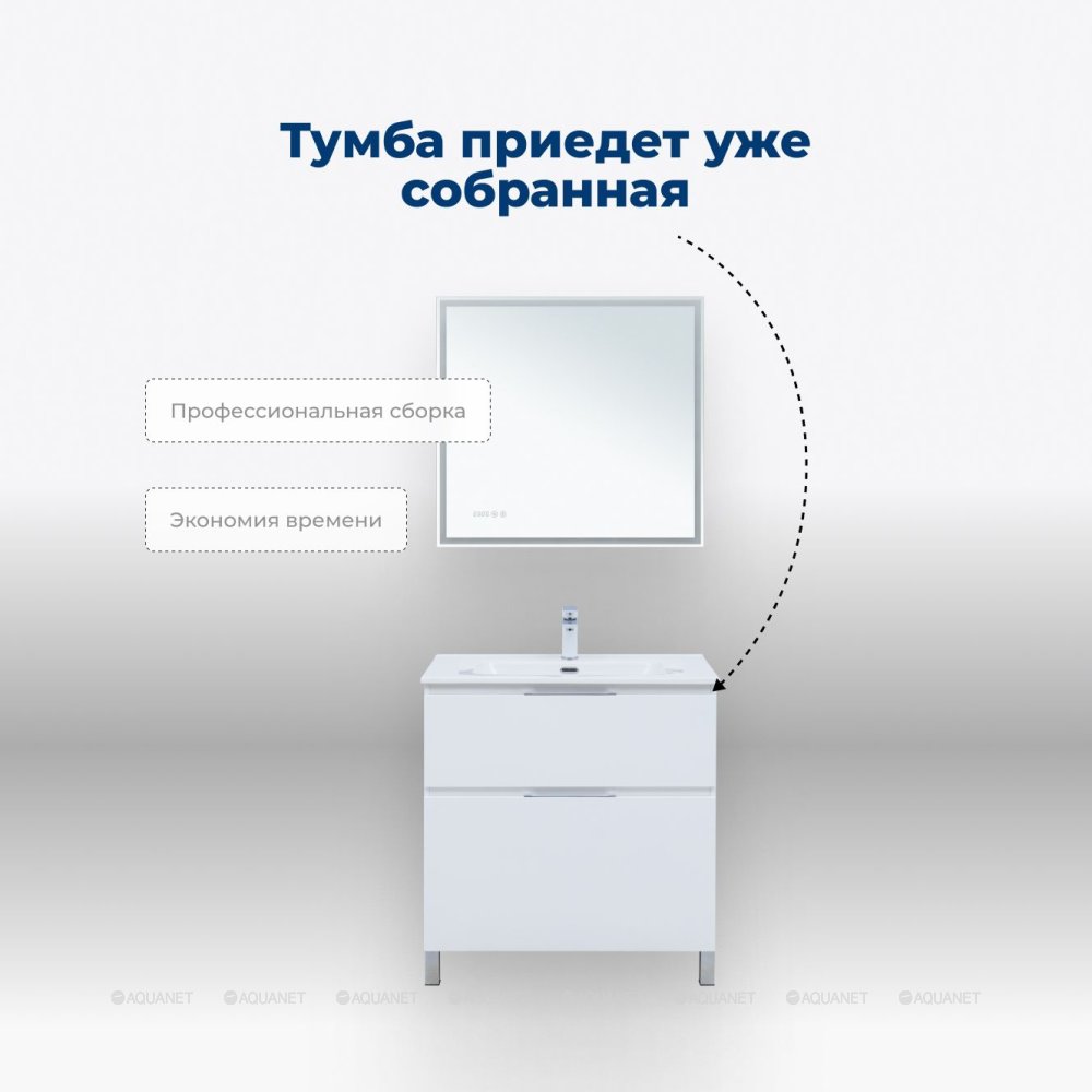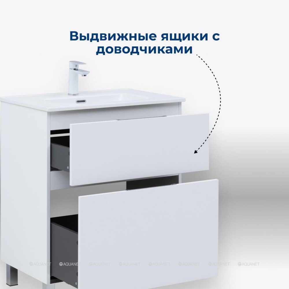 Aquanet 344134 Тумба Алвита new 80 напольная 2 ящ. цв. белый матовый (344134)