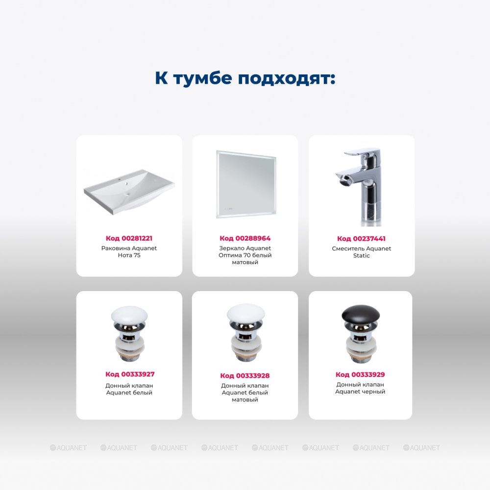 Aquanet 344142 Тумба Нота new 75 напольная 2ящ. цв.дуб веллингтон табак (344142)