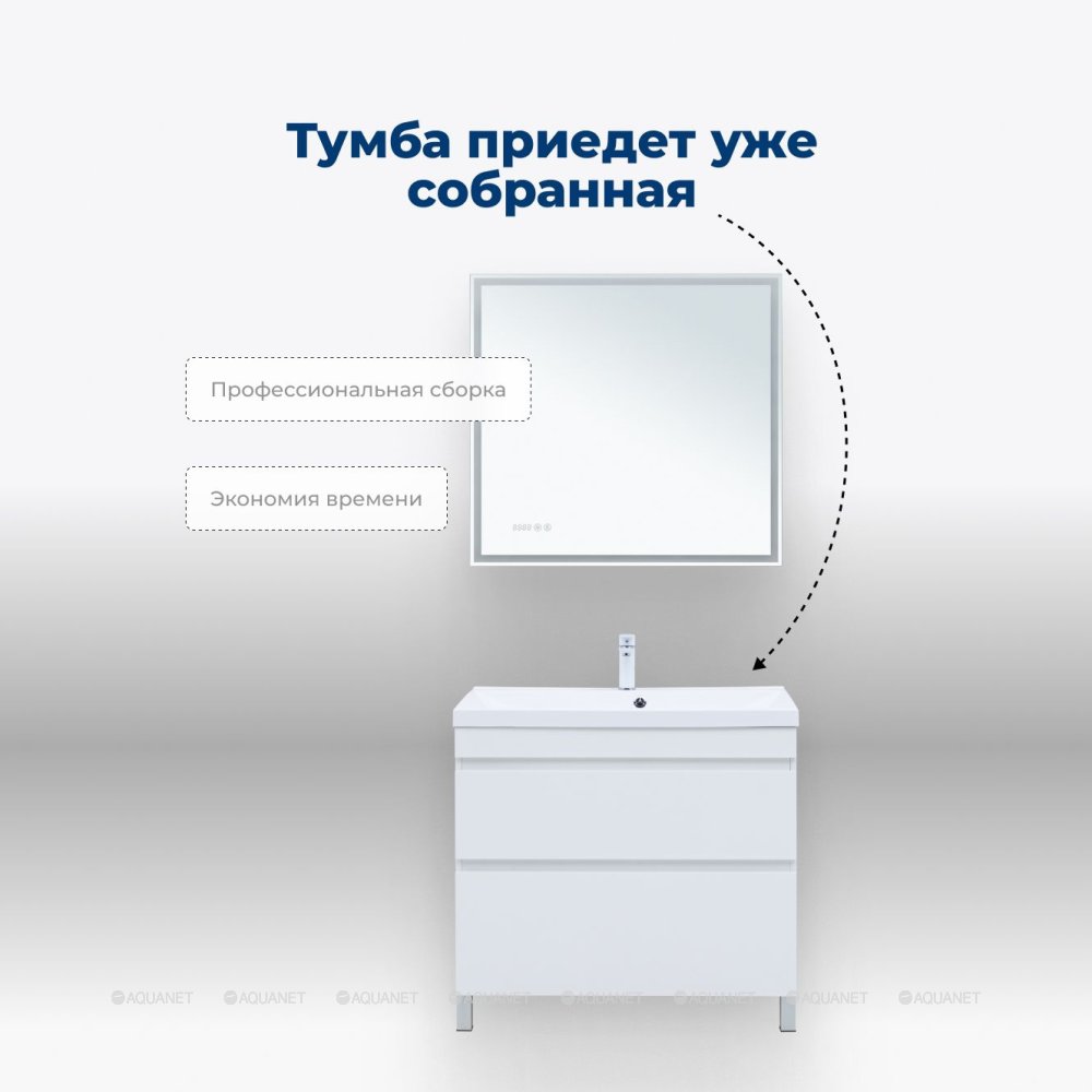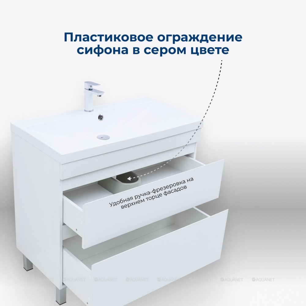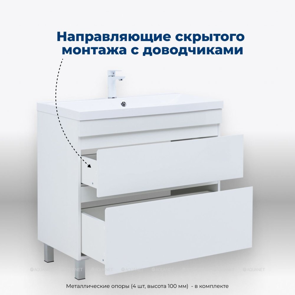 Aquanet 344147 Тумба Нота new 90 напольная 2ящ. цв.белый глянец (344147)