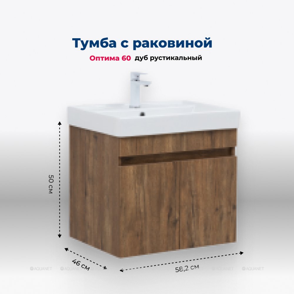 Aquanet 345351 Тумба с раковиной Оптима 60 цв. дуб рустикальный (345351)