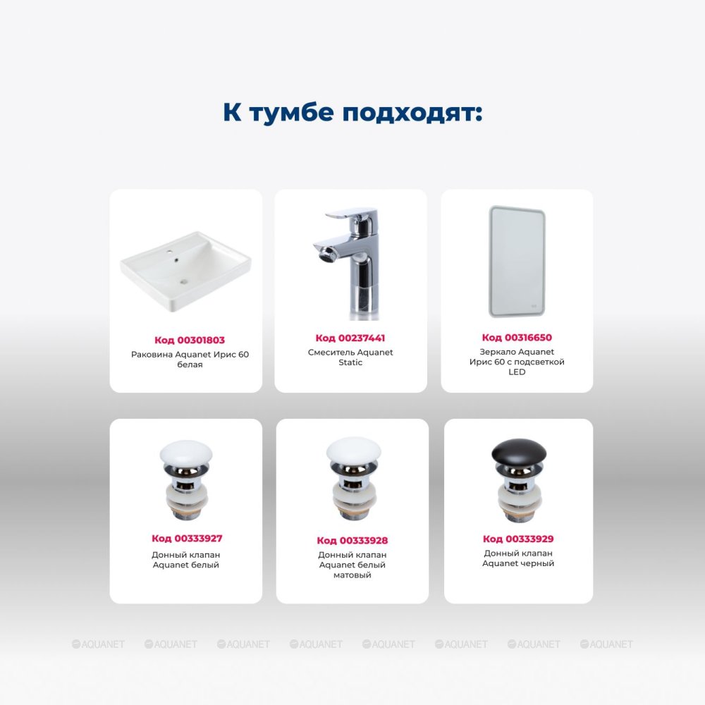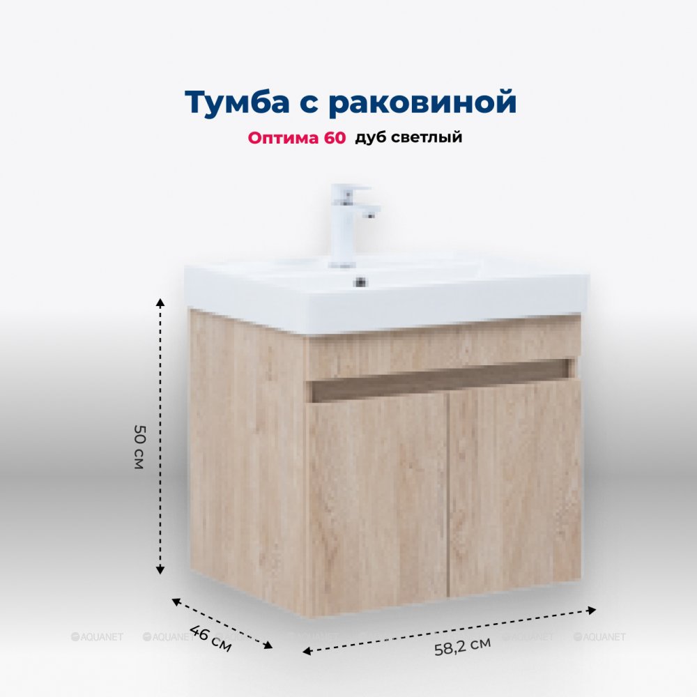 Aquanet 345353 Тумба с раковиной Оптима 60 цв. дуб светлый (345353)
