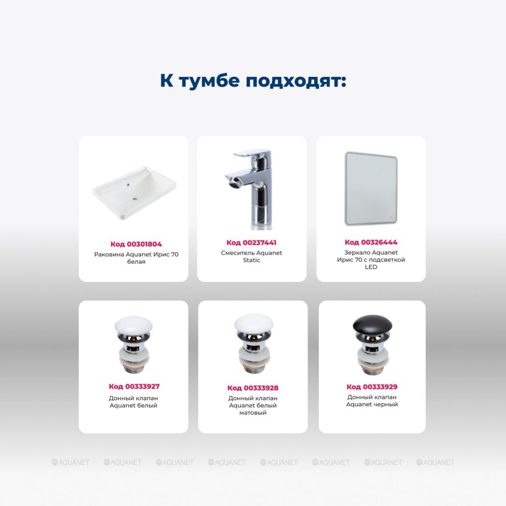 Aquanet 345357 Тумба с раковиной Оптима 70 цв. дуб светлый (345357)