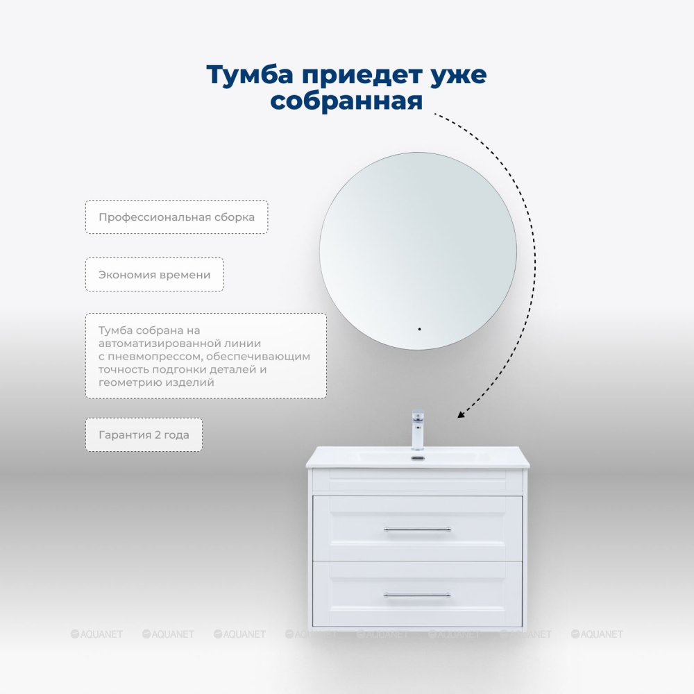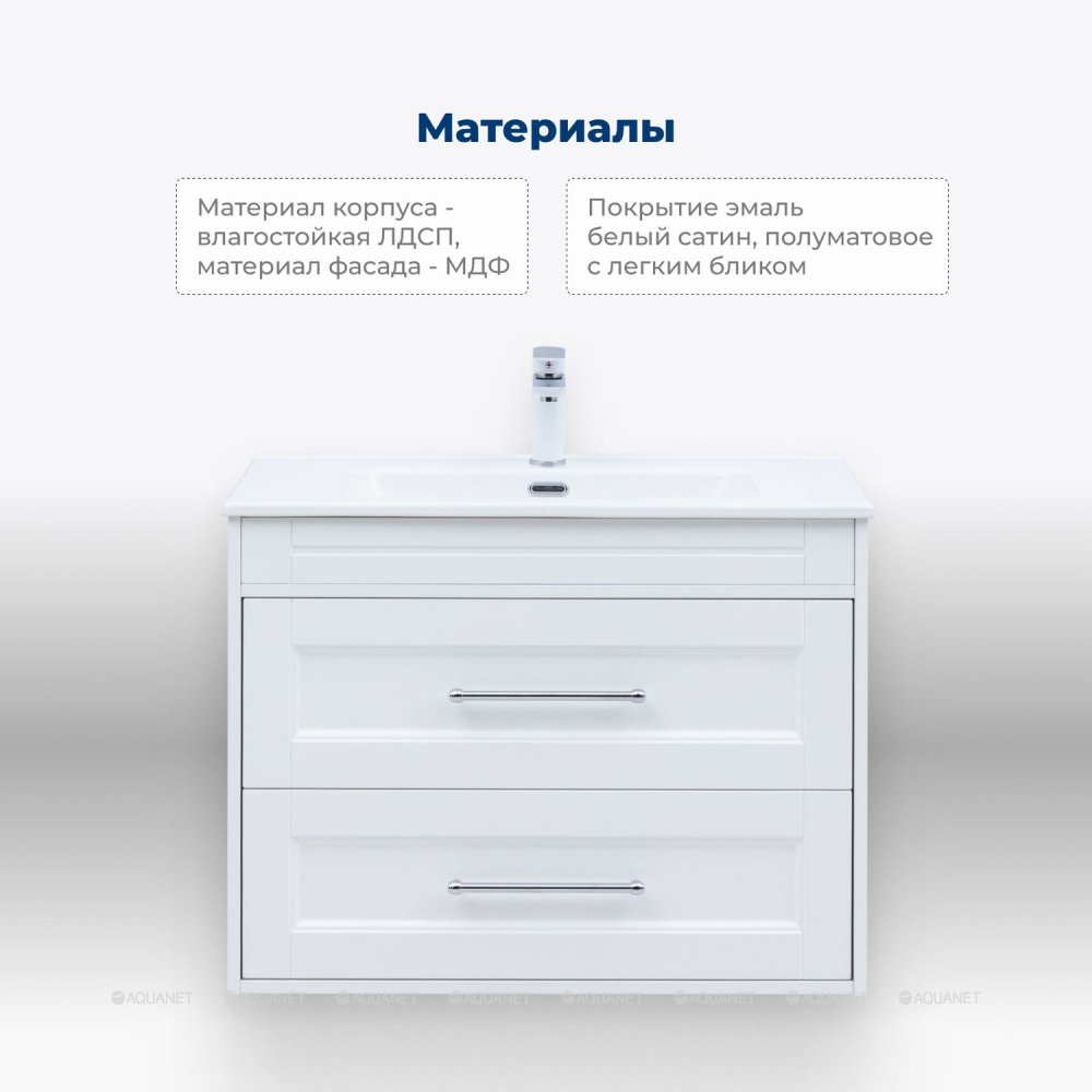Aquanet 345366 Тумба с раковиной Бостон new 80 (Flat) цв.белый сатин (345366)